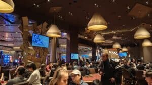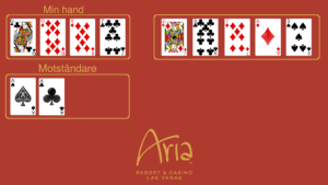 Det följs sedan upp av att jag ringer och sätter upp mig på listan på ARIA Resort & Casino, och sen har man två timmar på sig att komma dit och checka in. Det är ett tips till alla som ska hit och spela – det gör att du med stor sannolikhet är väldigt högt upp på listan när du väl checkar in på plats, så att du slipper stå och vänta. Under tiden passar jag på att laga mig lite frukost/lunch, som oftast blir en ost- och skinkomelett med lite keso till. Sen går bilen mot Aria och efter 2–20 minuters väntan har jag en plats vid ett av borden igen.