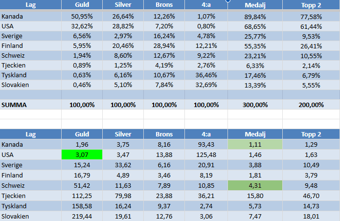 Åttondelsfinalerna är avklarade och nu väntar kvartsfinaler med start redan vid lunchtid idag. Många av er noterade gårdagens uträkningar där Bengan suttit i labbet med sannolikheter, oddsuppskattningar och alla tänkbara scenarier. Arbetet fortsatte även under morgonen och nu har vi medaljchanserna – och mer därtill – färdiguträknade.
