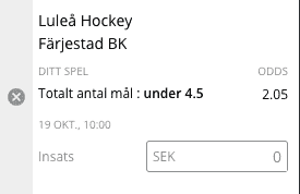 Att det kommer bli en tight matchbild är nog alla med på här, så jag är faktiskt lite förvånad över att vi får över två gånger pengarna på under 4.5 mål. Visst det är en låg över/underlina, men ganska standard när Luleå spelar hemma och ganska standard i slutspelssammanhang.