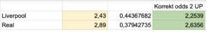 Korrekt odds på Liverpool borde vara omkring 2,25 och på Real Madrid 2,63.